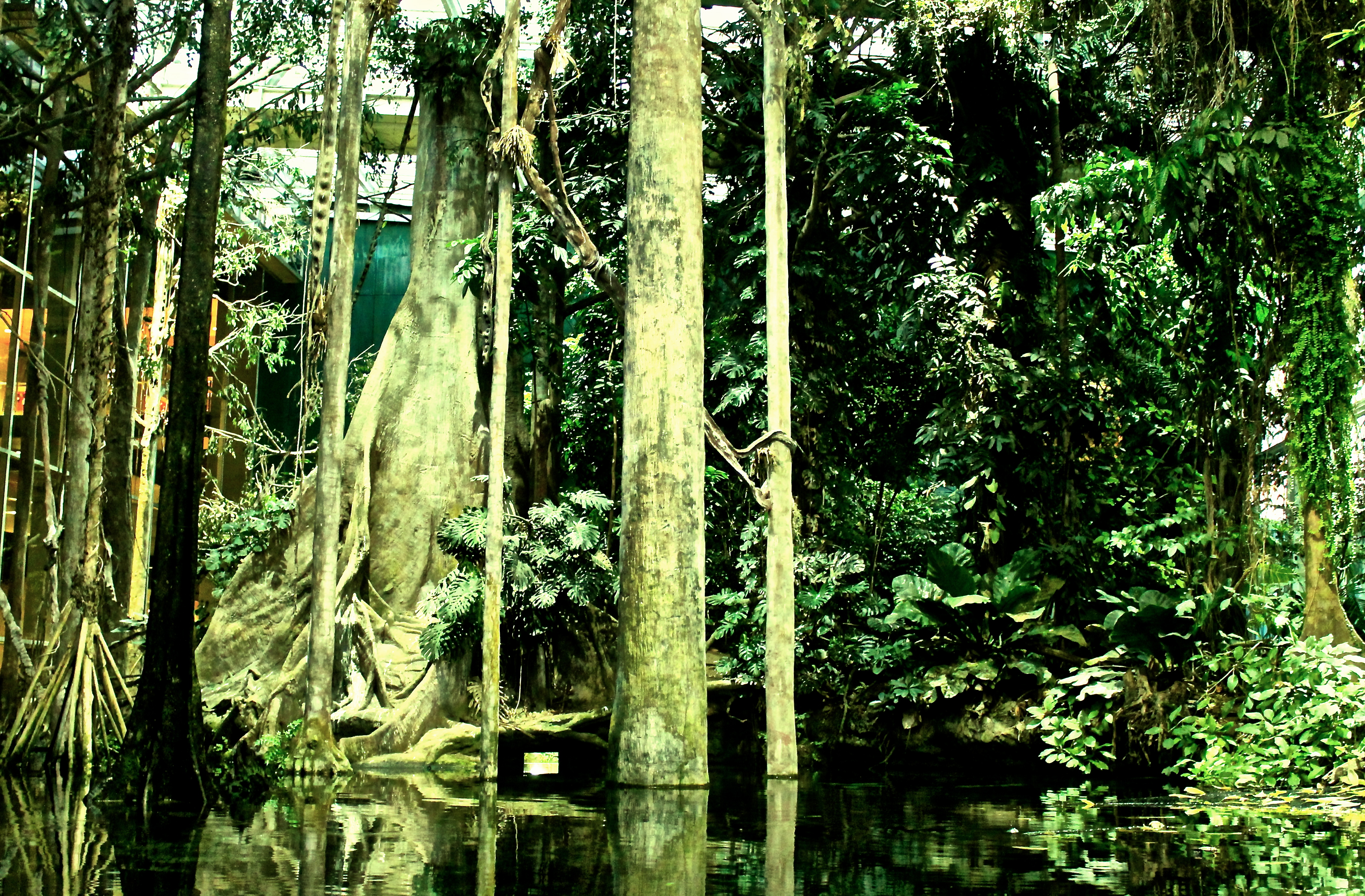 И вот казалось наконец ваши чада вдоволь насладились наукой, как перед ними возникает затопленный тропический лес и тут они как под силом магнита липнут к стеклу, чтобы детально изучить всех водных существ. Там плавают огромные рыбы пираньи, устрашающие рыбы-усачичерепачки, скаты, и даже обитает крокодил.