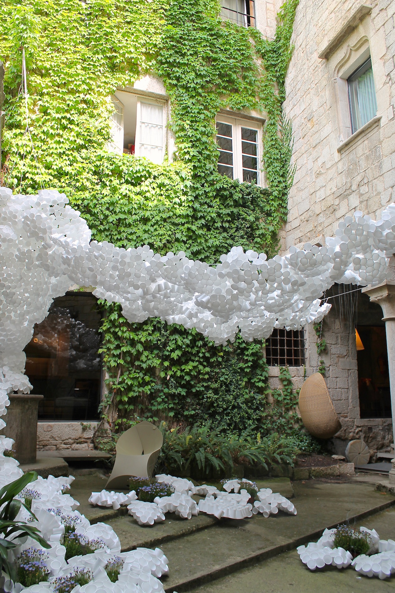 После краткого отдыха в укромных садах в верхней части города, мы заново спустились в центр и в Музее Искусств на встретил вот такой шатер в дырках из бахромы. Наш любимый изумрудный цвет.