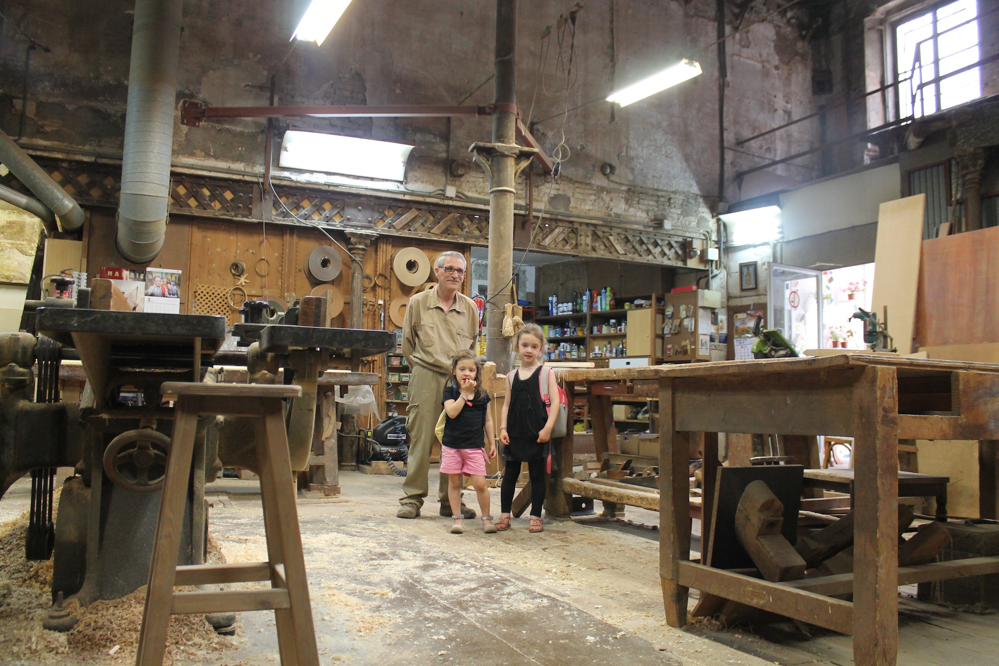 А еще мы заглянули в мастерскую к одному местному ремесленнику и он рассказал о том как все его предки по отцовской линии занимались плотницким делом и о том, что сын (тоже плотник) не хочет продолжать семейную традицию. еще Арманд показал, нам всю мастерскую и оказалось, что чугунные колоны построил сам Гюстав Эйфель (да, да тот самый, который построил Эйфелеву башню!