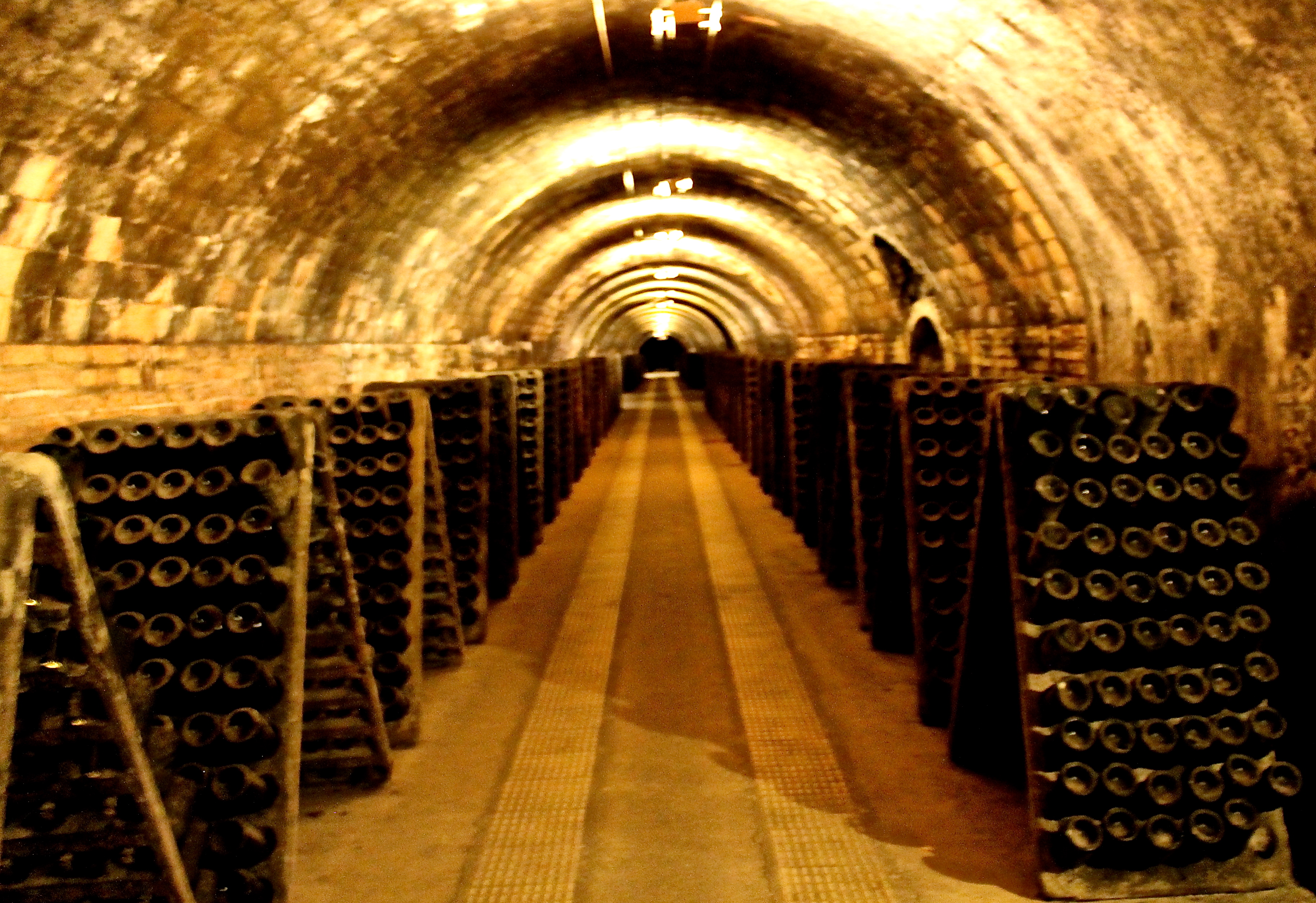 Нам поведали секреты хранения шампанского, и теперь настал самый любимый момент наверное всех посетителей (не говоря уже о детях) — поездка по километровым лабиринтам погребов. Поражает количество коридоров и рядов, это самый настоящий город под землей, где хранятся сотни тысяч бутылок главной империи игристого напитка в Каталонии.