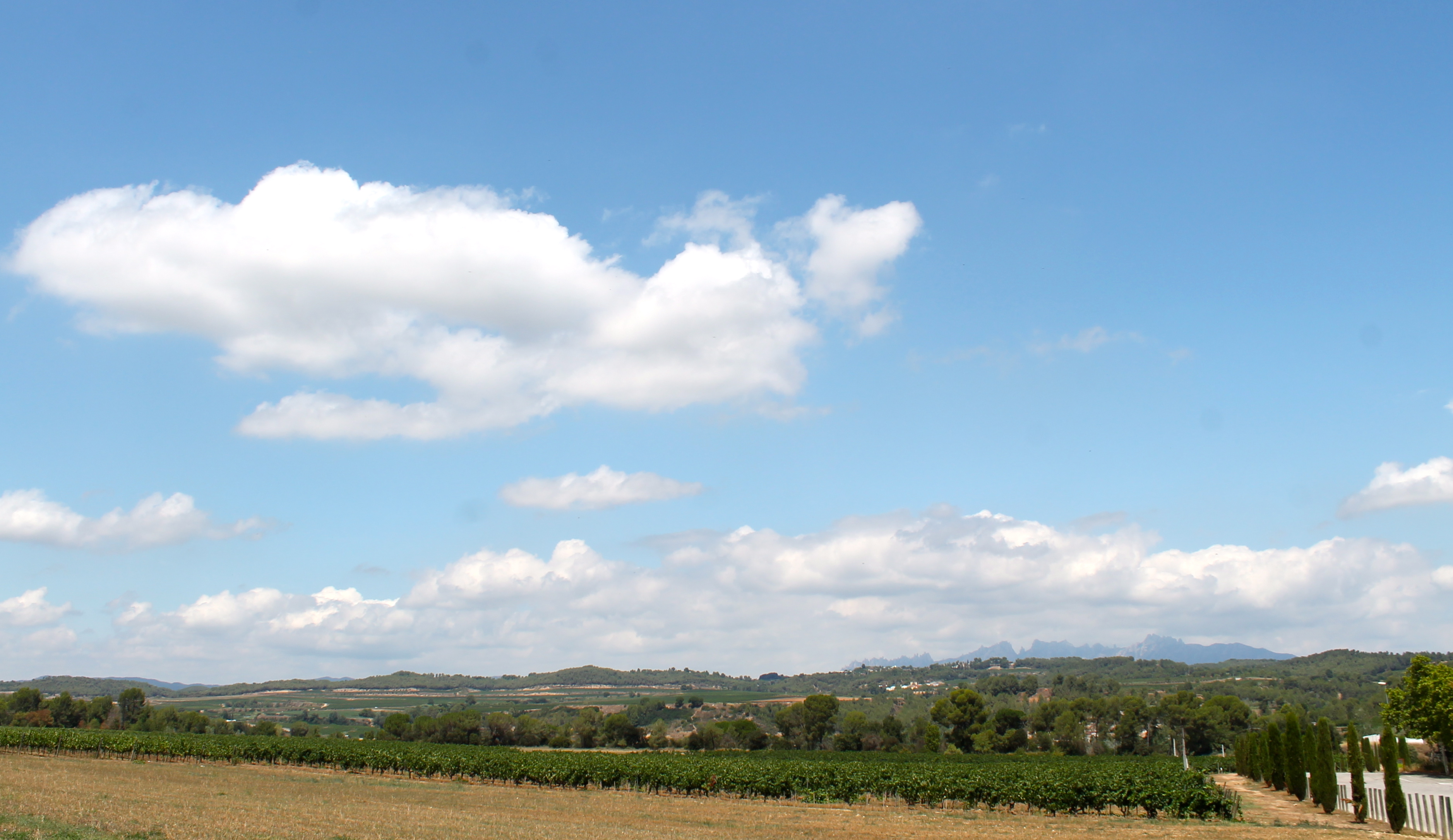 Мы заезжаем на территорию виноградников. Визит начинается с завораживающего вида на гору Монтсеррат, всего в 50 км от нас.